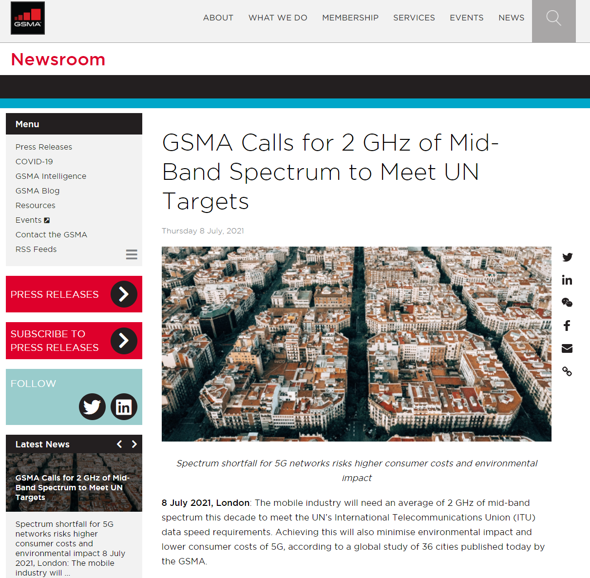 2023 年世界无线电通信大会将是全球移动产业对齐中频解决方案政策的关键机会。该频谱的开放将确保移动运营商能够实现 ITU 制定的目标,以满足未来消费者和企业业务的需求,即下载速度和上传速度分别达到 100Mbps 和 50Mbps。