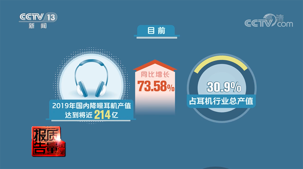 在这个背景下,国内降噪耳机市场在近几年得到了迅速扩张。央视《每周质量报告》称,2019 年国内降噪耳机产值已将近 214 亿,同比增长 73.58%,占耳机行业总产值的 30.9%。同时,现阶段我国降噪耳机生产厂家已有 300 家左右。