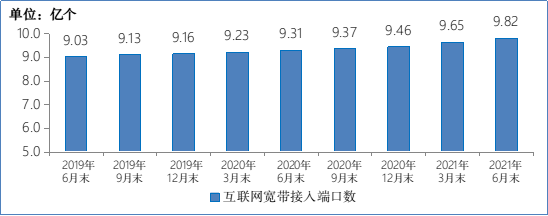 图 9 2019-2021 年 6 月末互联网宽带接入端口数发展情况