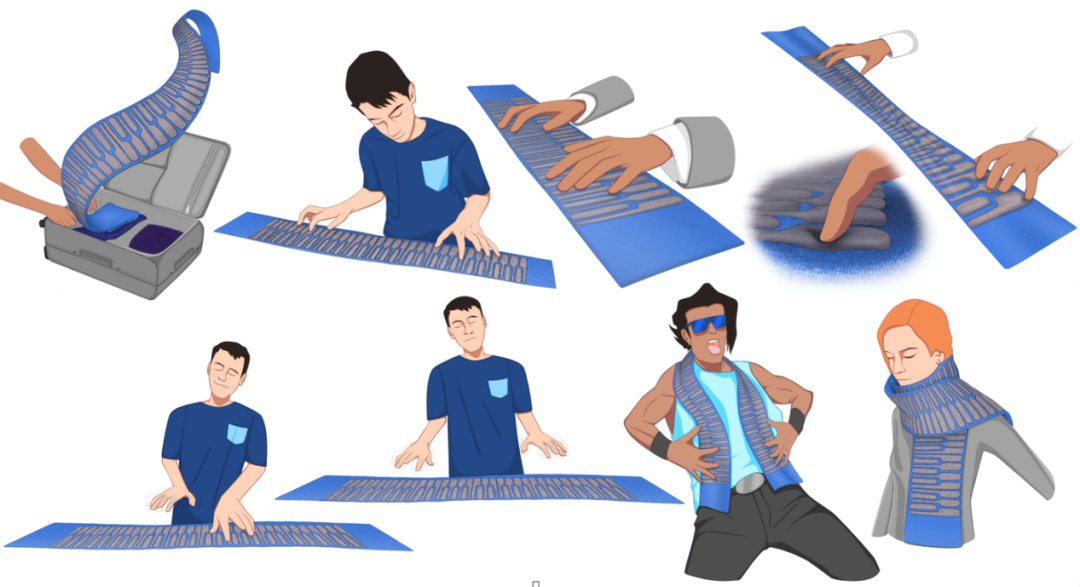 说到柔软,就不得不提到著名的实验室 MIT media lab,它们的研究人员最近直接将刚硬的物理音乐键盘,采用数字针织技术,将其变成了纺织品。由织物制成的键盘,可以像一双袜子或围巾一样轻松折叠、卷起并装在行李中。也可穿戴起来,扩展演奏音乐的场合。