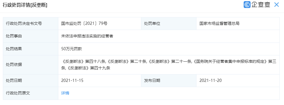 国家市场监管总局称,基于调查情况和评估结论,决定分别对百度、中信银行罚款 50 万元,系顶格处罚。该处罚决定书文号国市监处罚〔2021〕79 号,于 11 月 20 日公开发布,处罚时间是 11 月 15 日。