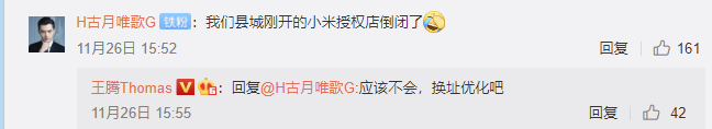 对此,有网友表示街上部分店似乎是在搬迁,而他则确定地表示是倒闭了,但小米之家关门肯定是换址优化。