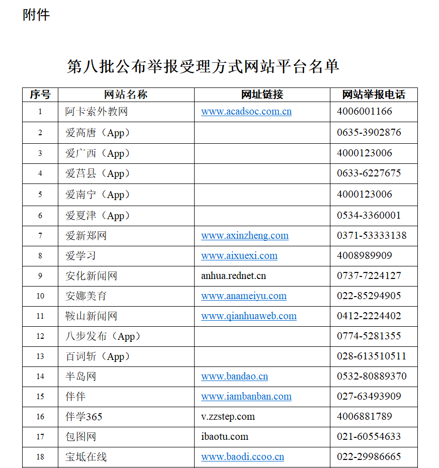 网信办组织第八批 450 家网站平台向社会统一公布举报受理方式