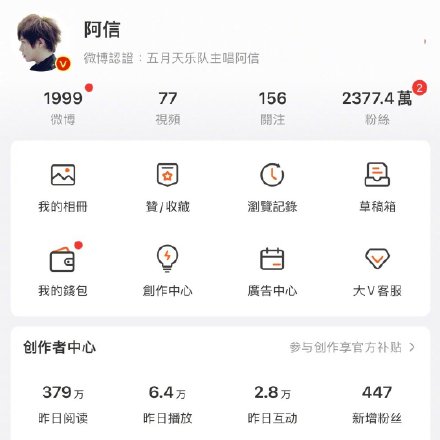 謝謝新浪微博、謝謝2000萬追蹤阿信的你,謝謝2000則微博留言、分享、按讚,或僅僅只是安靜觀看的你。