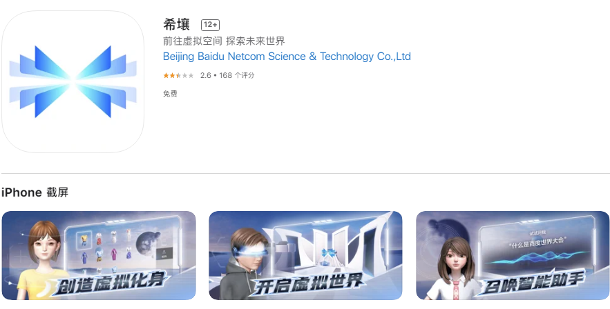 此前百度已经在多个商店上架了一款希壤 App,包括苹果 App Store。