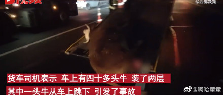 【黄牛高速跳车酿事故多车受损,其中一辆劳斯莱斯损失超30万元】12月8日,浙江金华。在杭金衢高速往江西方向发生一起因黄牛跳车引起的交通事故,多车受损,其中一辆劳斯莱斯损失预估超30万元。货车司机表示,车上有四十多头牛,装了两层。一头牛趁他不备,从车上跳下,引发了事故。目前,该事故还在进一步处理当中。