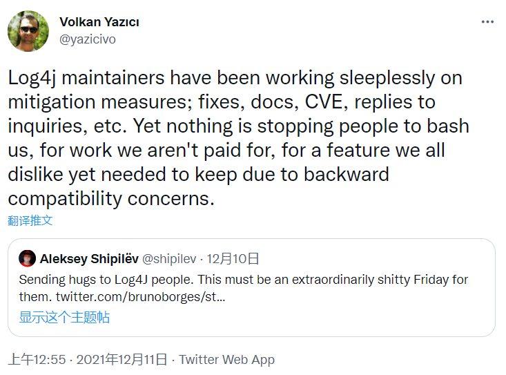 根据 Apache 软件基金会 Logging Services 的 PMC 成员 Volkan Yaz?c? 的说法,本次的漏洞来自于一个旧功能,但为了保持向后兼容性,就没有移除。