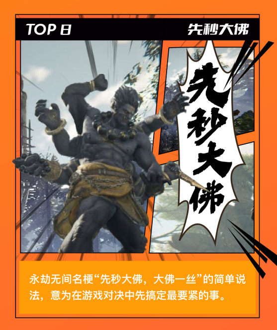 “先秒大佛”源自于《永劫无间》中的游戏角色天海和尚,人物释放技能会变身成为一樽巨大的佛僧(故称为“大佛”)且具有极强的战斗力,所以玩家们在游戏中碰到大佛后,通常会在其血量见底时互相沟通“先秒大佛”。这个词也可以引申意思也可以是快速搞定最重要的事情。