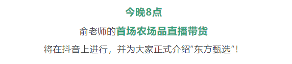 新东方还称,今晚 8 点俞敏洪的首场农场品直播带货将在抖音上进行,并正式介绍“东方甄选”。
