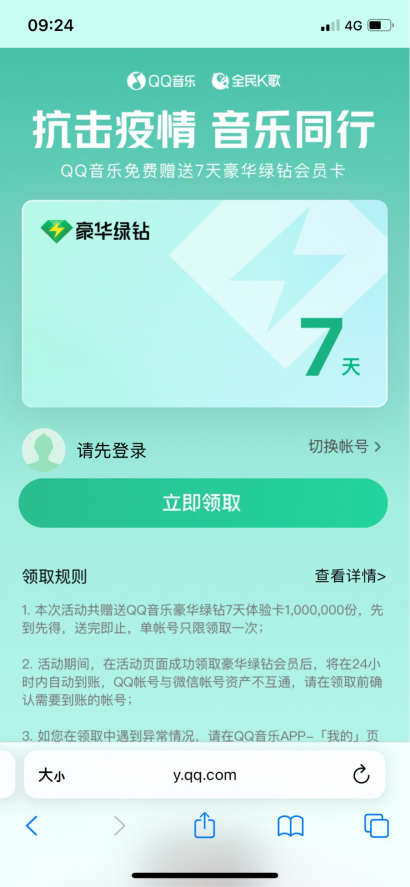 现在,QQ 音乐和全民 K 歌宣布将向所有人赠送豪华绿钻(包括音乐包)和全民 K 歌 VIP 各 7 天,不过似乎并不是无限领取。