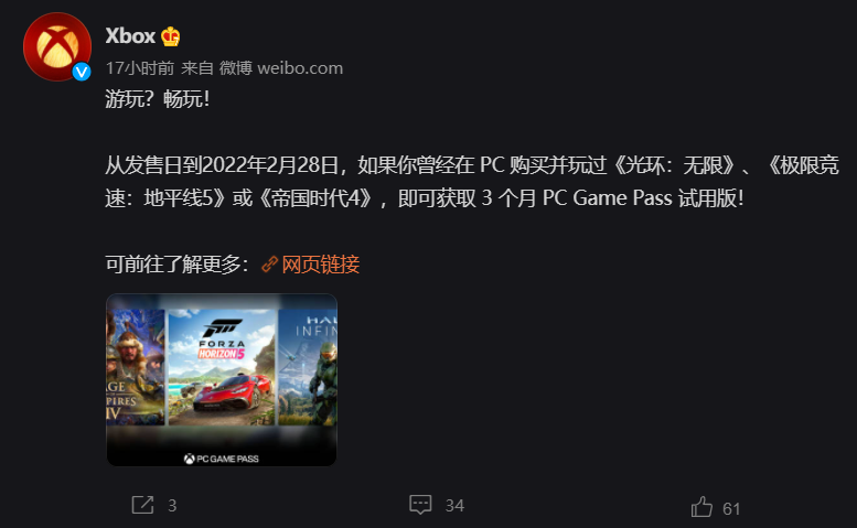 牛逼了~微软免费送 3 个月 PC 端 XGP 订阅