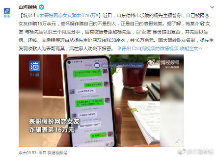 神奇!表哥扮网恋女友骗表弟16万