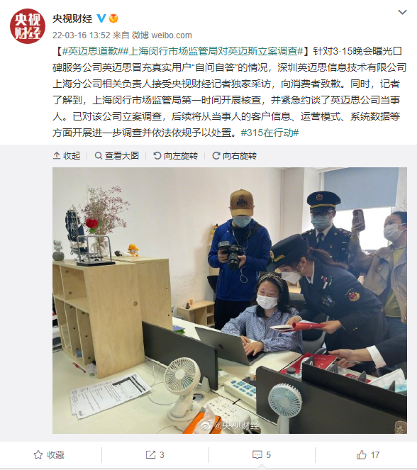 被 315 点名后英迈思道歉,上海闵行市场监管局已对其立案调查
