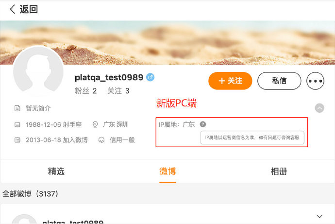 据介绍,此功能将在“个人主页-个人资料”中展示用户最近一个月内最后一次发布博文或评论的 IP 归属地域。IP 归属地域显示规则与评论区当前显示规则保持一致。此功能在测试阶段,仅对部分用户开启测试,主动开启 / 关闭功能目前暂不开放。