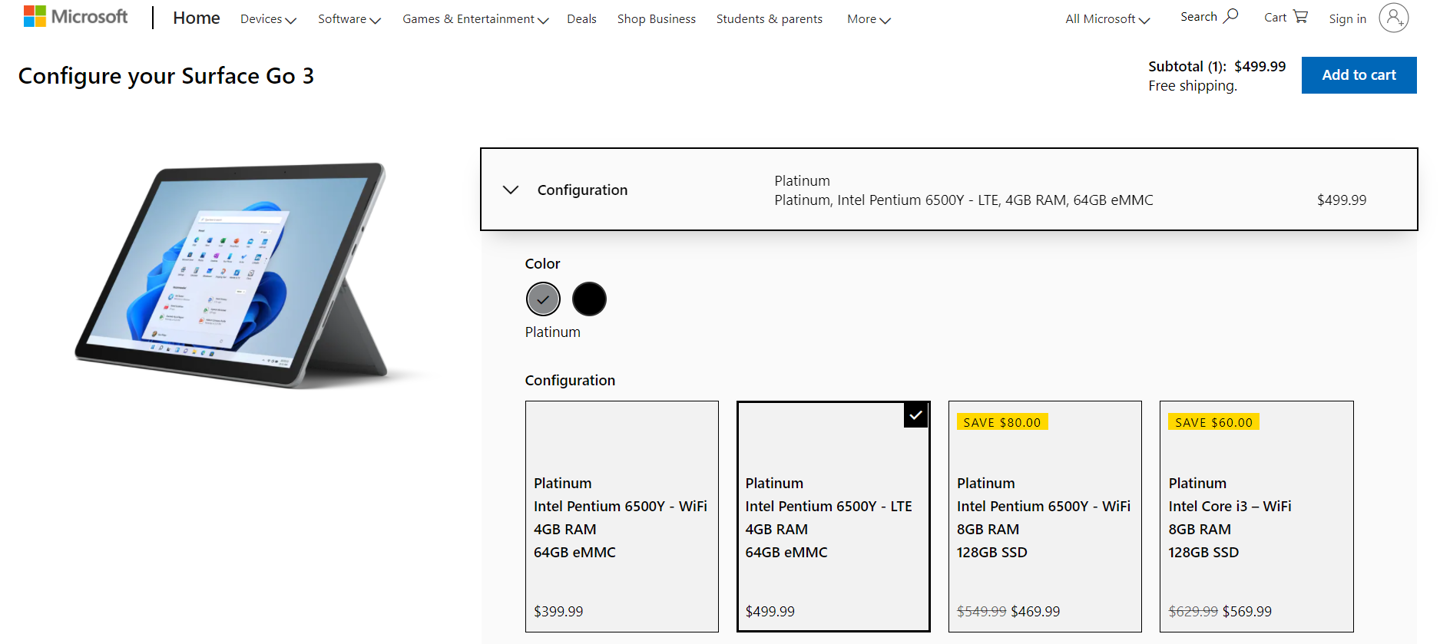 Surface Go 3 低配 LTE 版没有黑色版本,已在美国开启订购,将于 3 月 28 日开售。