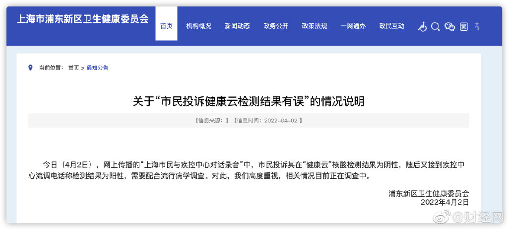 站长新闻 您的位置:老客外链 > 站长新闻 > 上海回应市民录音投诉健康云结果有误 文章来源:未知 作者:老铁seo 人气:16 2022-04-03 09:03:27 【上海浦东新区卫生健康委员会发布《 关于市民投诉健康云检测结果有误的情况说明 》】浦东新区卫生健康委员会在其官方网站上发布情况说明,具体内容如下:今日(4月2日),网上传播的“上海市民与疾控中心对话录音”中,市民投诉其在“健康云”核酸检测结果为阴性,随后又接到疾控中心流调电话称检测结果为阳性,需要配合流行病学调查。对此,我们高度重视,相关情况目前正在调查中。 (浦东新区卫健委) 上一篇:教育部对义务教育阶段学科类校外培训治理回头看 下一篇:关键词seo优化怎样才能提升排名效果? 相关文章 超千万人正承受60分钟以上极端通勤 文章来源:老铁商城2020-12-04 OPPO推出125W充电技术 兼容主流协议,支持手机平板笔记本 文章来源:老铁商城2020-08-15 微信支付时,若出现 “风险提醒”你很有可能正在陷入骗局 文章来源:老铁商城2020-07-05 同样做网络推广,为何你不赚钱? 文章来源:老铁商城2020-05-05 网络推广如何提高客户信任交易 文章来源:老铁商城2020-05-05 小红书推广营销法则 文章来源:老铁商城2020-05-05 超市争相“上线”,直播带货探索新销售场景 文章来源:老铁商城2020-05-05