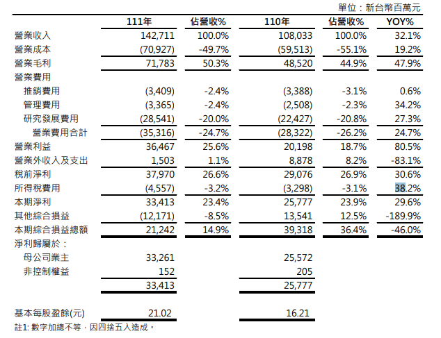 营业费用方面,本季度总计 353.1 亿元新台币(占营业收入 24.7%);营业利润 364.67 亿新台币(约 81.69 亿元人民币),同比增长 80.5%。