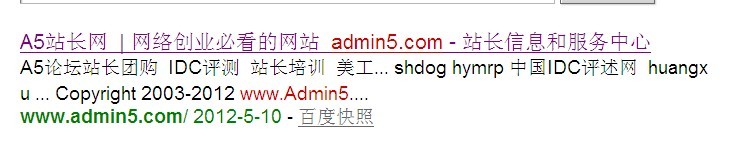 为什么这样说先看截图,笔者认为百度目前对三个标签的认可度亦在越来越低,这也是百度公司一直提倡的提升用户体验,把最符合用户要查询的东西释放出来并给予好的排名。其次快照内容以网站考前内容、标题及H1标签等作为描述,这显然也不符合用户体验,如何抓取到最符合网站的描述,这确实值得深思。不过从A5的抓取来看,描述调用的居然是网站上面做的广告,这种情况如果不进行处理,后果肯定不好,建议能用JS方式来调用广告内容。当然,现在搜索引擎对JS的抓取也是在进步,这也是一时权宜之计。
