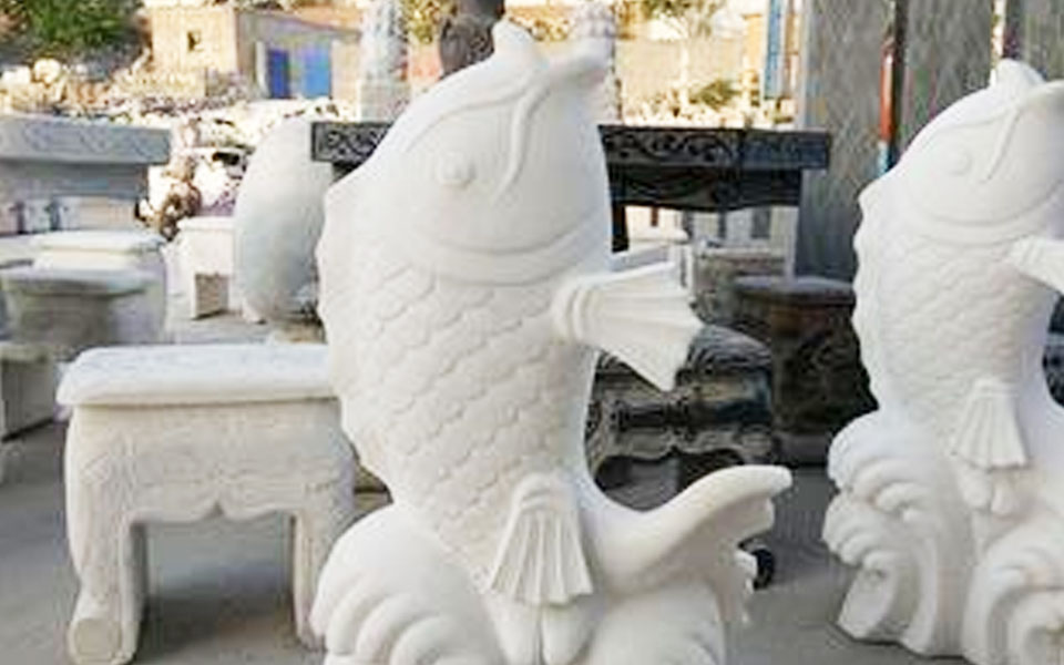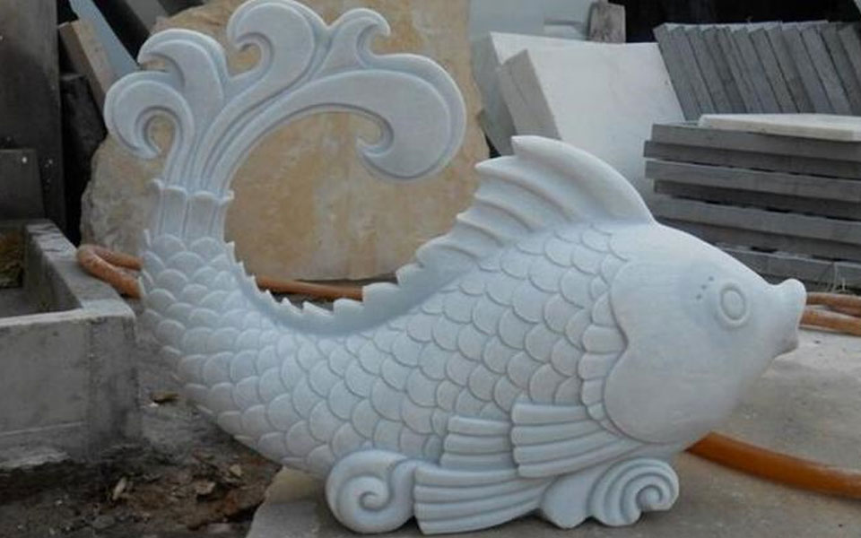 石雕鱼,由天然石材雕刻而成的各种鱼造型摆件,精美雕刻的石雕鱼栩栩如生,造型多变,其中常见的是作为喷水雕塑的形式而存在。石雕鱼可摆放在城市广场、花坛、林荫道上,也可点缀在自然式园林的山坡、草地、池畔或水中。在园林石雕景观中,石雕鱼是常见的装饰品之一,石雕鱼的摆放要结合所在空间的大小、尺度,才能使石雕鱼与园林环境互为衬托,相得益彰。