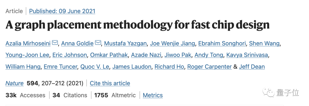 这次牵涉其中的论文,于去年 4 月 13 日被《Nature》接收,6 月 9 日发表。它主要讨论了一种用深度强化学习来快速设计芯片的方法。论文中表示,通过此方法,AI 只需不到 6 小时的时间,就能设计出一块芯片;而人工往往要花费数周或数月才能做到。