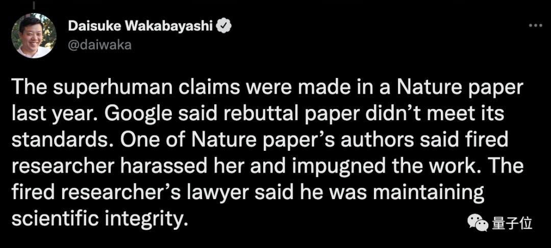 据《纽约时报》披露,Chatterjee 博士团队被谷歌告知,他们是不会发表一篇质疑《Nature》成果的论文的。而且一份书面报告证明,Chatterjee 博士已经被谷歌解雇。