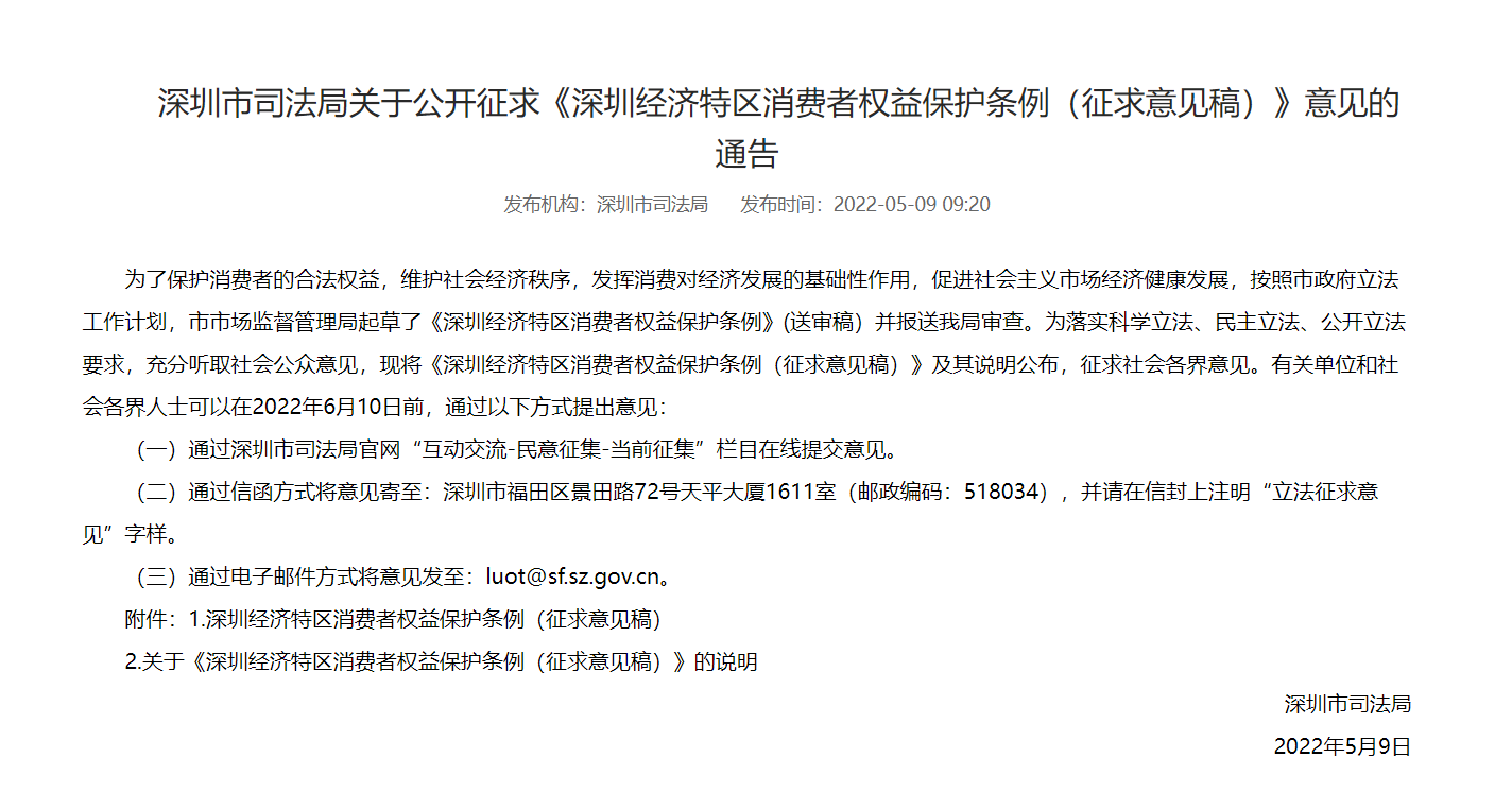 《深圳经济特区消费者权益保护条例(征求意见稿)》:点此下载