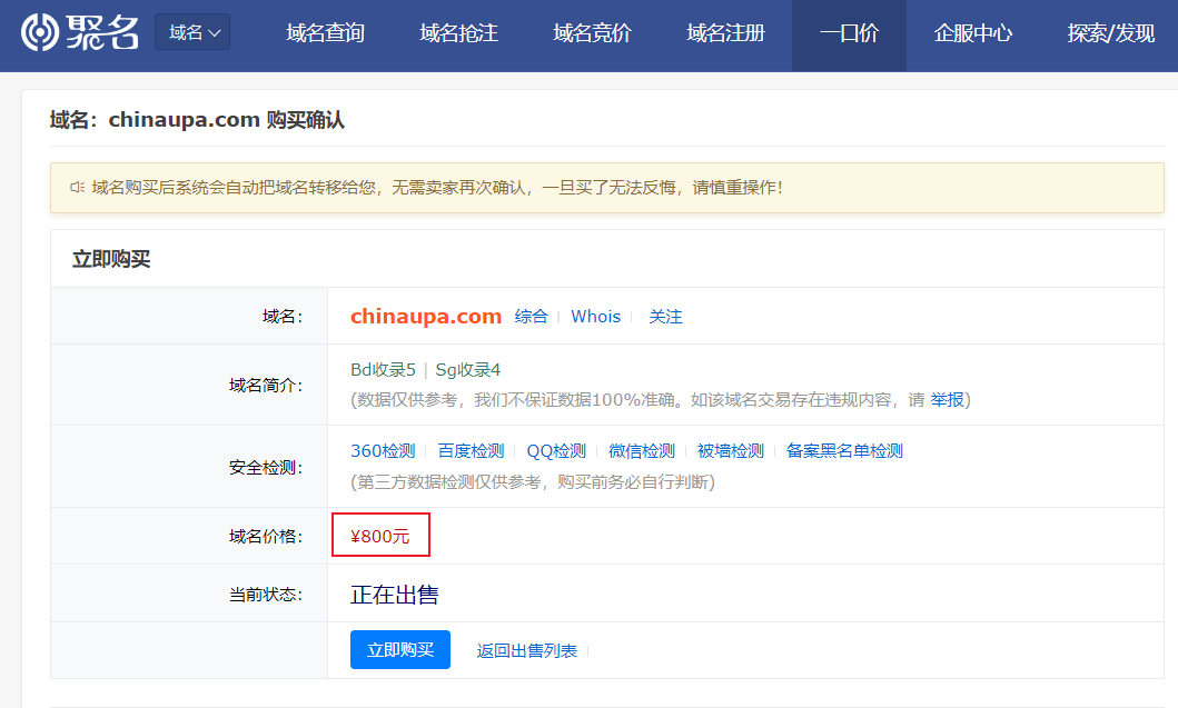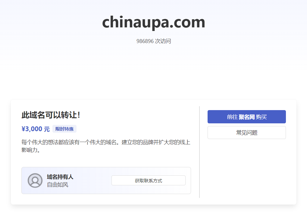 据IT之家小伙伴发现的线索,统一推送联盟官网的域名 chinaupa.com 目前处于“正在出售”状态,价格为 800 元,持有人为“自由如风”。