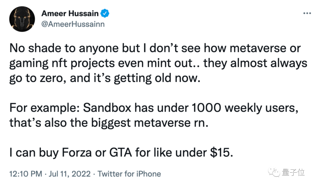 而当初那个爆火的 The Sandbox 游戏平台,活跃用户则逐渐从 2022 年 4 月份的 1000 多人,下降到 7 月份不到千人在线。