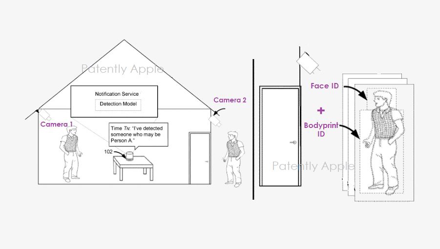 24 日消息,根据国外科技媒体 Patently Apple 报道,苹果近日获得了一项门前安全摄像头的设计专利。根据专利描述,该摄像头系统具备人脸识别功能,可与 HomePod mini、Smart TV+ 进行通信。