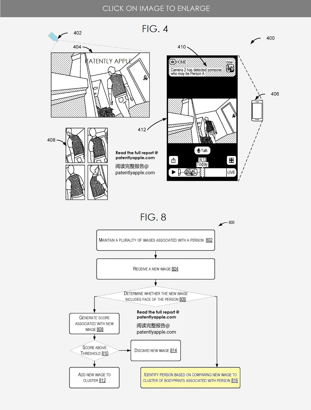 在一个实施案例中,设备在监测到有特定对象(例如人脸或者身体)走进,就会可以执行面部识别以识别特定人的身份。该设备可以例如基于分析特定人的其他身体特征(例如,包括他们的躯干、穿着的衣服等)进一步从第一视频馈送中识别特定人的身体特征。