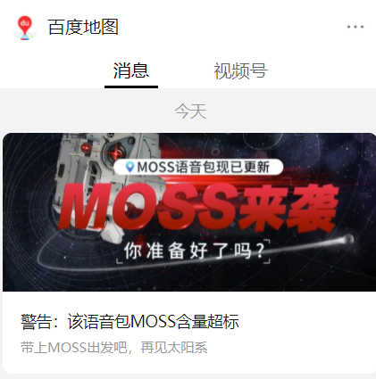百度地图 App 中搜索 MOSS,即可找到新版流浪地球 MOSS 语音包。