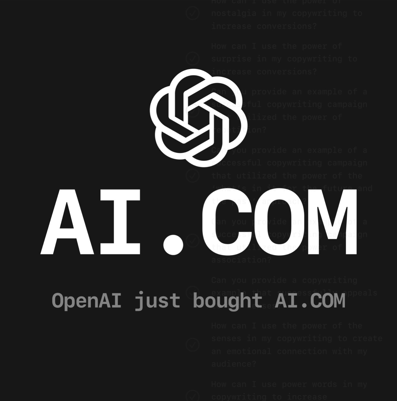 猫不在袋子里了!我们很自豪地说我们参与了 Ai.com 域名的销售。非常期待看到他们会用该域名做什么!