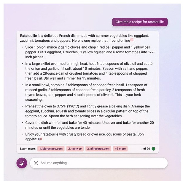 微软改进了必应聊天,在回答旅行和食谱方面的问题时,通过引用更优质的来源,能够提供更好的答案。