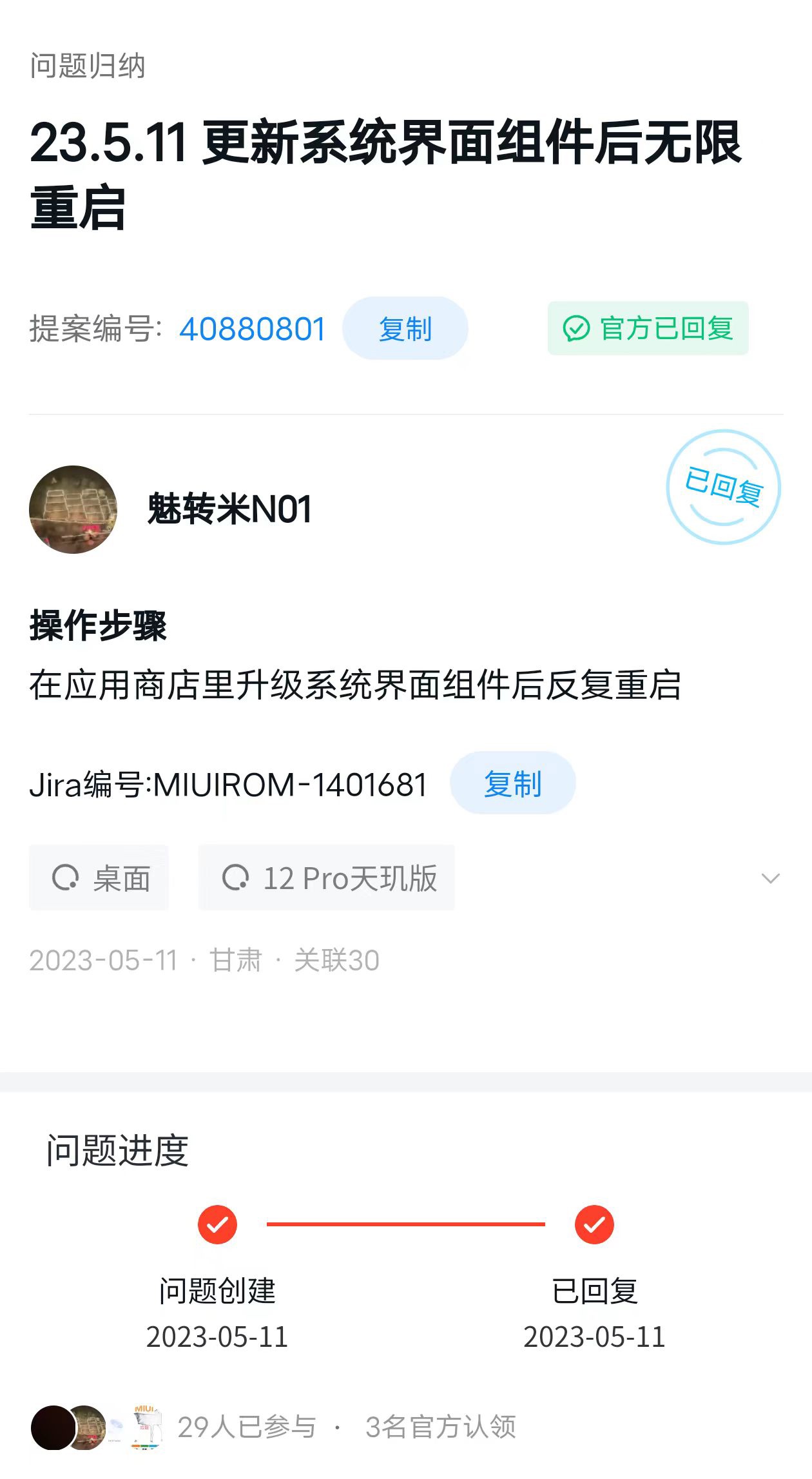 5 月 13 日消息,有用户在小米社区提出问题,称“在应用商店里升级系统组件后反复重启”,小米社区运营没有提供具体解决方案,表示让用户前往就近售后网点处理。