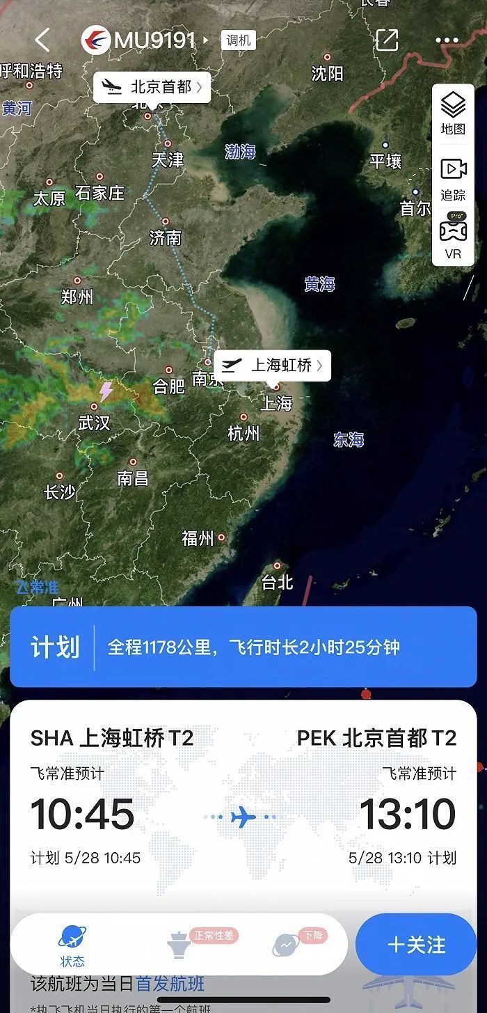 班次 MU9191 上海虹桥 - 北京首都:计划于 10:45 起飞,13:10 抵达北京首都机场,飞行时长为 2 小时 25 分钟;