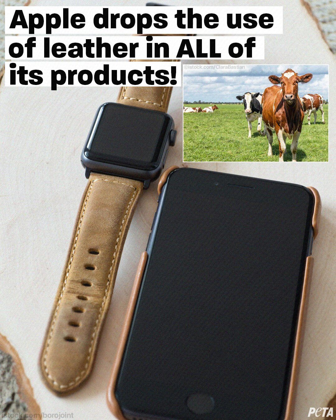 苹果公司决定和皮革制品说“adIOS”,让无数动物幸免于难,并有助于减轻气候灾难。