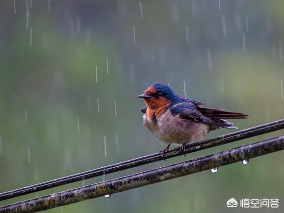 细讲来,鸟类跟哺乳动物的感受不大一样,因为它们长的是羽毛,而大部分哺乳动物长的就是“毛”,不管多厚,下雨的时候多半会被淋透,那种感觉很不舒服。而人类几乎没毛,被雨淋了,那是分分钟的不舒服啊,所以躲雨的需求比大多数动物都迫切。但细说来,鸟类对于下雨的反应是因“鸟”而定的,当然也要看雨情而定,也就是说看品种,看雨有多大,下多久。