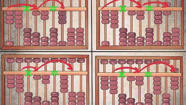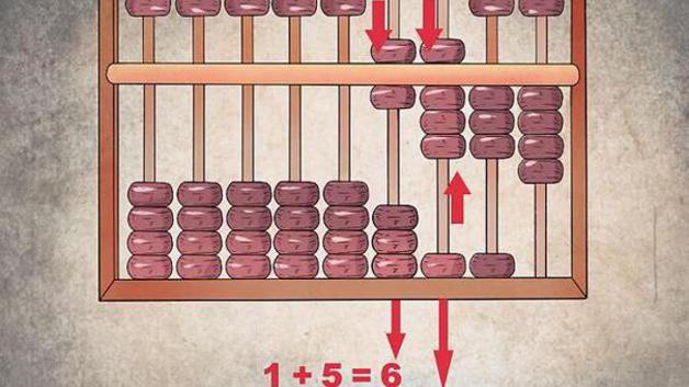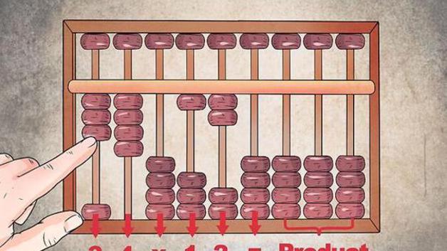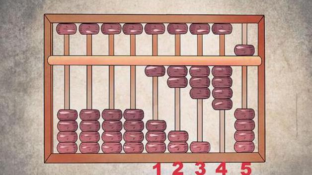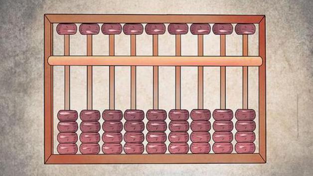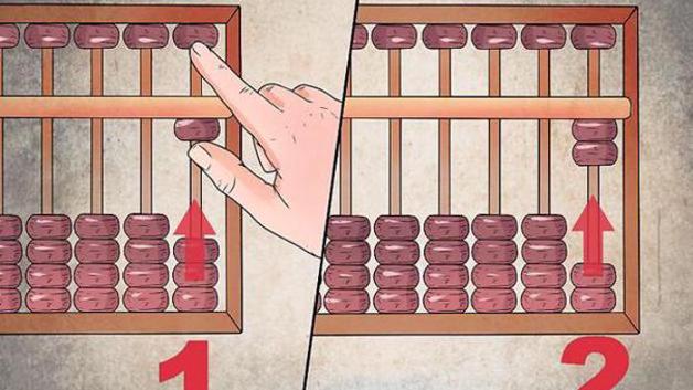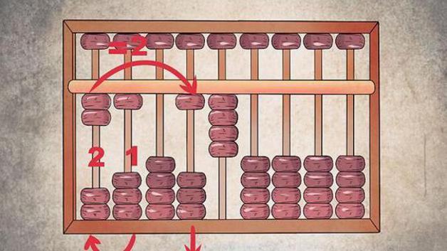 1、认识算盘上的构造。最常见的算盘有分布在不同栏中的两排珠子。在每一栏的上面一排,每排是一个珠子,而下面一排每排都会有四个珠子。开始计算时,所有的珠子都必须归位到下面那一排。上面一排的珠子代表数字5,下面一排的每个珠子代表数字1。熟悉算盘的构造之后,你可以把下面一排的珠子取不同的值,来进行更复杂的运算。不过,按照算盘的计算方法,上面一排的珠子始终代表下面一排每个珠子代表的数的5倍。