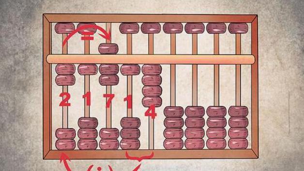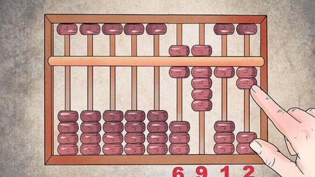 2、指定每一栏一个固定的数位的值。作为一种现代计算工具,每一栏珠子代表一个数位的值。因此,从右数第一栏应该是个位 (1-9),第二栏是十位(10-99),第三栏是百位(100-999)等等。根据你的计算,你可以指定你需要记录的小数的位置。比如你要表示123456.7,7应该在第一栏,6在第二栏,5在第三栏,以此类推。当做这些计算时,你只需要记住小数的位置在哪里,用铅笔在算盘上面标出来,或者如果能帮你记住的话,挑一排空出来也是可以的。