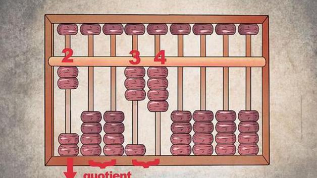 1、做除法时,在除数和被除数中间留出商的空位。[3] 除法比乘法更灵活,在各个数位上的数之间没有空位的时候最容易计算。算盘最左边那一栏是被除数,它右边相邻的空位是留着表示商的。假定你要计算34除以2。很明显答案至少是两位数,所以在右边的2和3、4之间留出两栏来表示商。总之,在算盘上计算34除以2,你应该在最左边打出2,用两栏来表示结果,第四栏打出3,第五栏打出4。