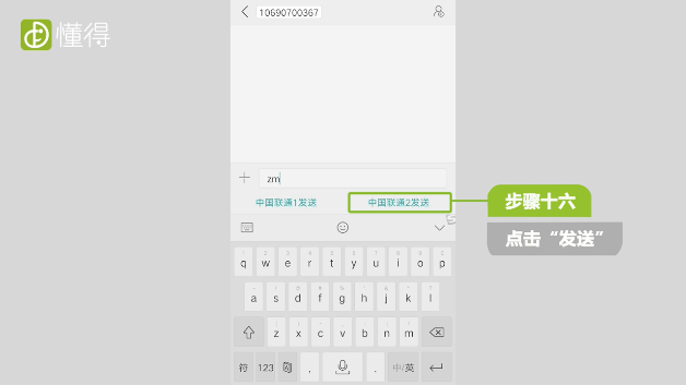 按照显示的内容发送短信,打开短信输入收件人,输入短信内容点击发送。