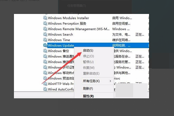 8、再次打开服务窗口,找到Windows Update服务,右键点击后选择“启动”菜单项,启动Windows Update服务后,重新启动电脑问题就解决了。
