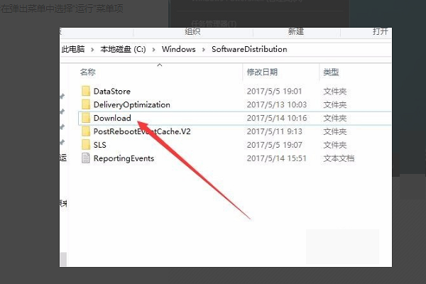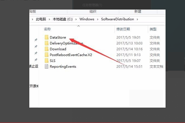6、打开SoftwareDistribution文件夹后,删除其下的DataStore文件夹及里面的文件。