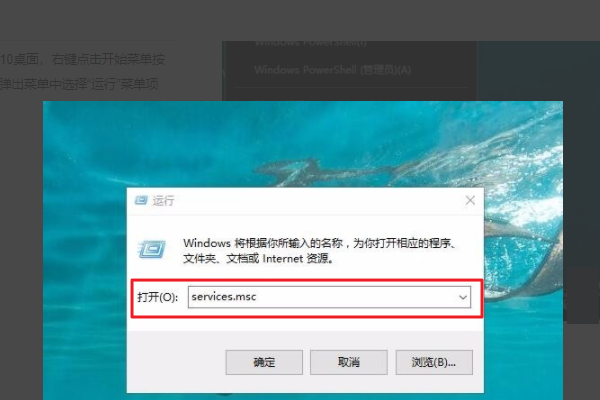 2、在打开的运行窗口中,输入命令services.msc,然后点击确定按钮,打开服务窗口。