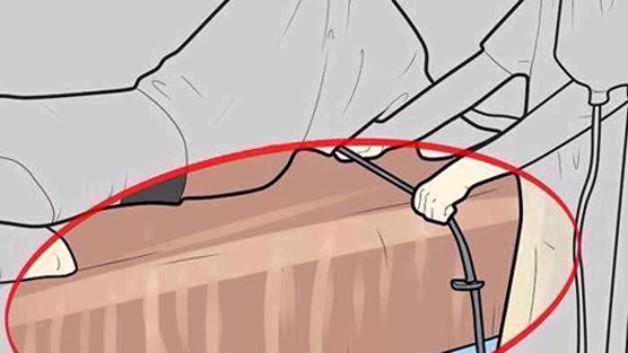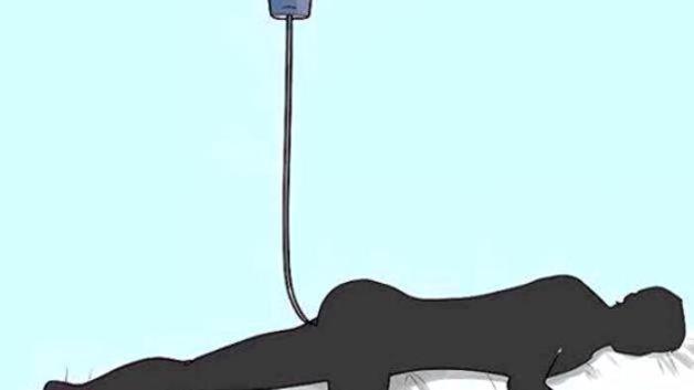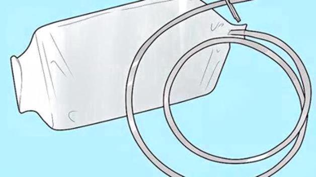 2、让灌肠液流进管子中,挤走管子中的空气。这个步骤会减轻灌肠过程中的痉挛。