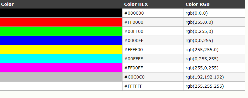 颜色由一个十六进制符号来定义,这个符号由红色、绿色和蓝色的值组成(RGB)。
