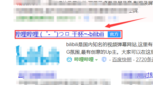 3、再从网页中找到【哔哩哔哩 (゜-゜)つロ 干杯~-bilibili】点击进入也就进入了B站