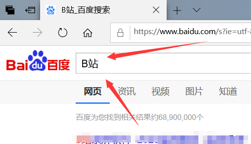 2、在浏览器搜索框输入B站并搜索;