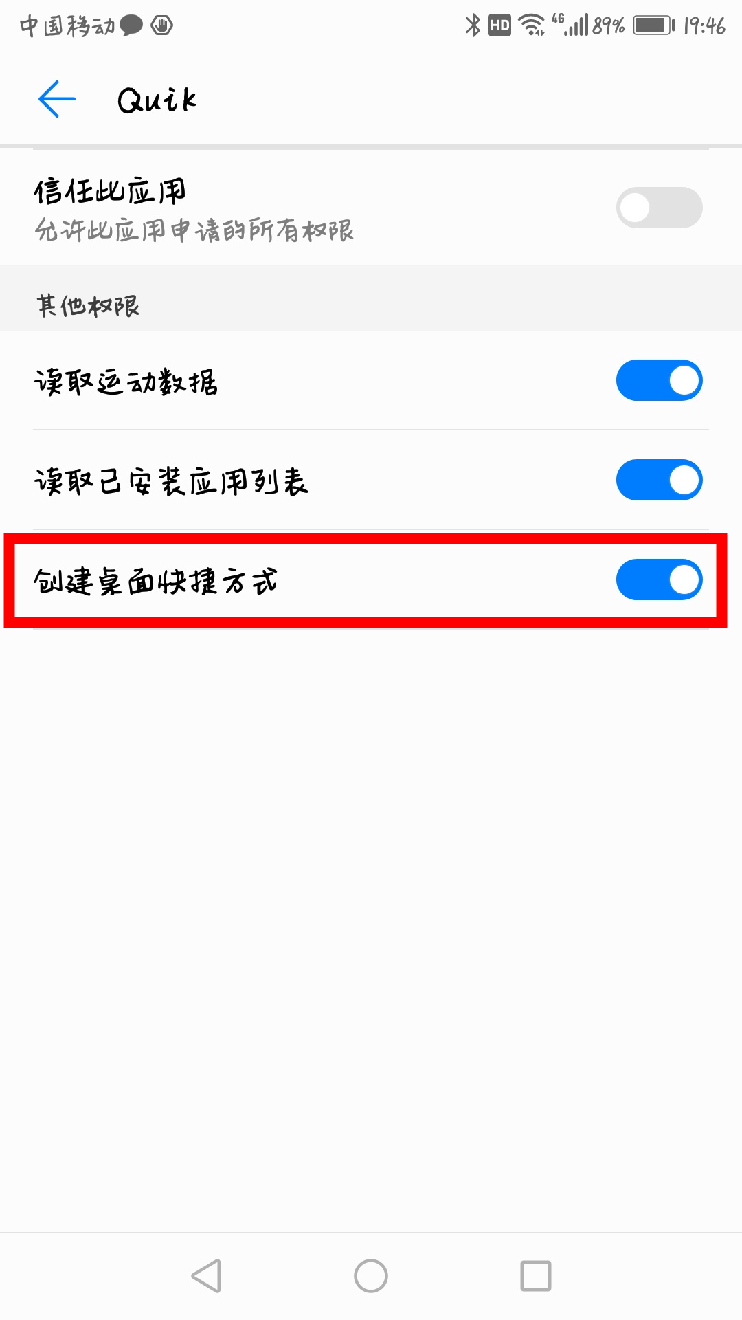 QUIK在华为手机中的存在方式