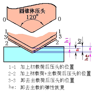 ②压入硬度。主要用于金属材料,方法是用一定的载荷将规定的压头压入被测材料,以材料表面局部塑性变形的大小比较被测材料的软硬。由于压头、载荷以及载荷持续时间的不同,压入硬度有多种,主要是布氏硬度、洛氏硬度、维氏硬度和显微硬度等几种。